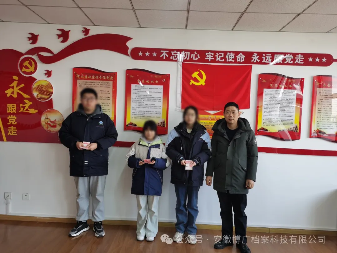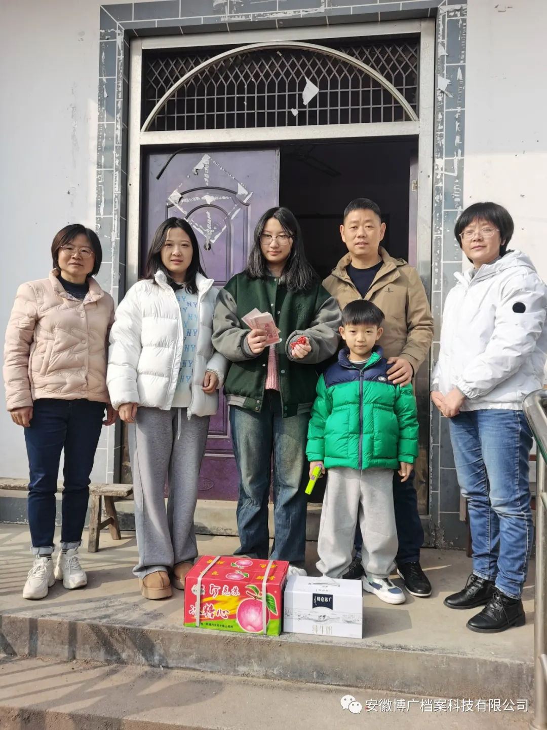 1月26日安徽博广档案科技有限公司总经理朱秀纪、滁州区域总监阚绪艳等一行工作人员,在韩主任的带领下,一同前往来安县中学帮扶三位正处于困境中的学生,让他们感受到社会大家庭的温暖。